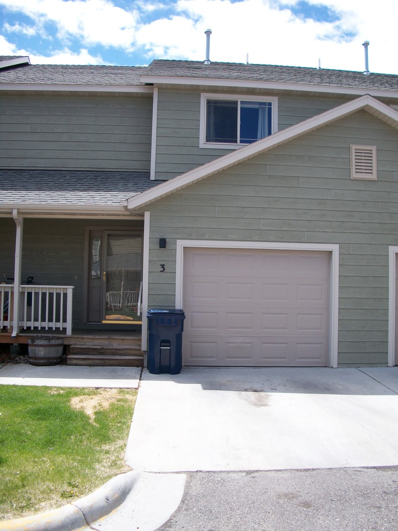 3 bedroom 2 1/2 bath condo in Bozeman. Main level has kitchen, dining and living room. Patio with mature landscaping outside dining room. Upstairs has spacious master bedroom with walk in closet and master bath. Two other generous sized bedrooms and full bath along with washer/dryer. One car attached garage.
